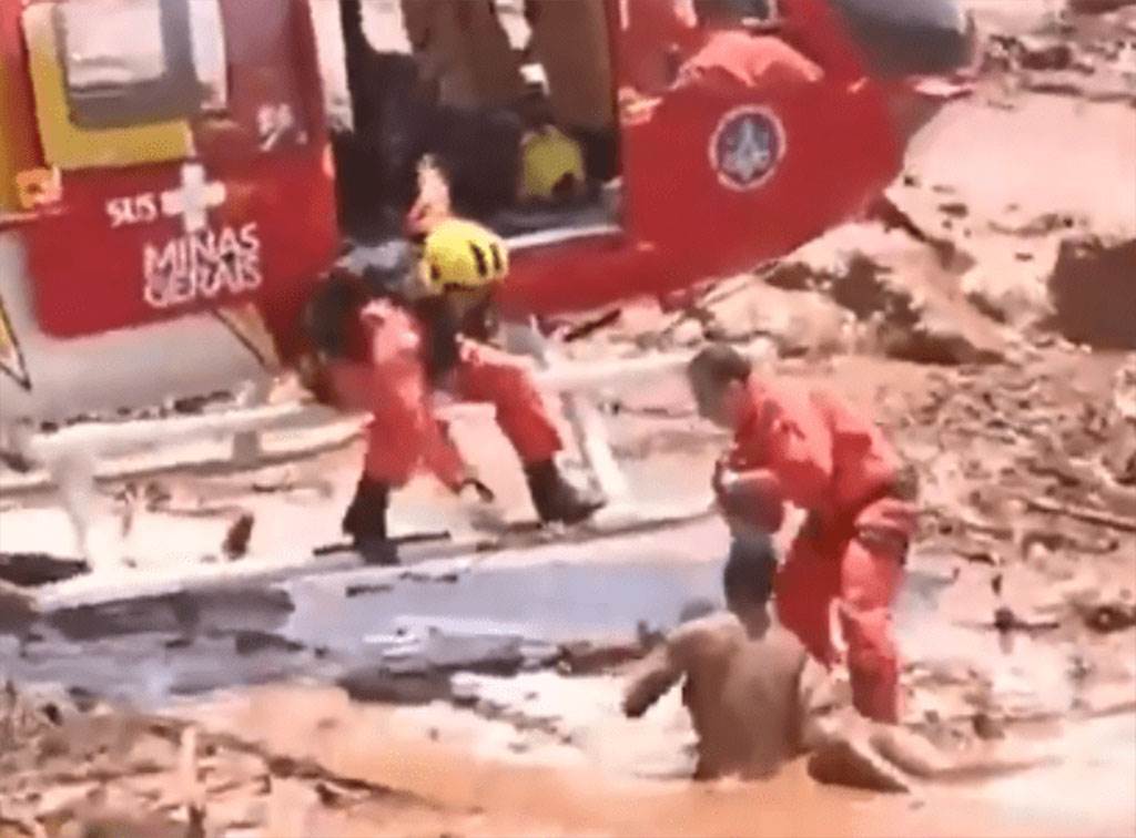Algunas zonas de la ciudad de Brumadinho fueron desalojadas, y los bomberos realizaban rescates con un helicóptero y vehículos terrestres. El canal local de televisión TV Record mostró un helicóptero de bomberos volando a centímetros del suelo mientras sacaban a una mujer cubierta de lodo de las aguas residuales.
