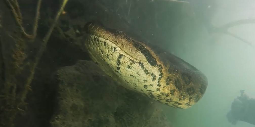 El increíble reptil fue captado en el fondo del río Formoso, en Brasil