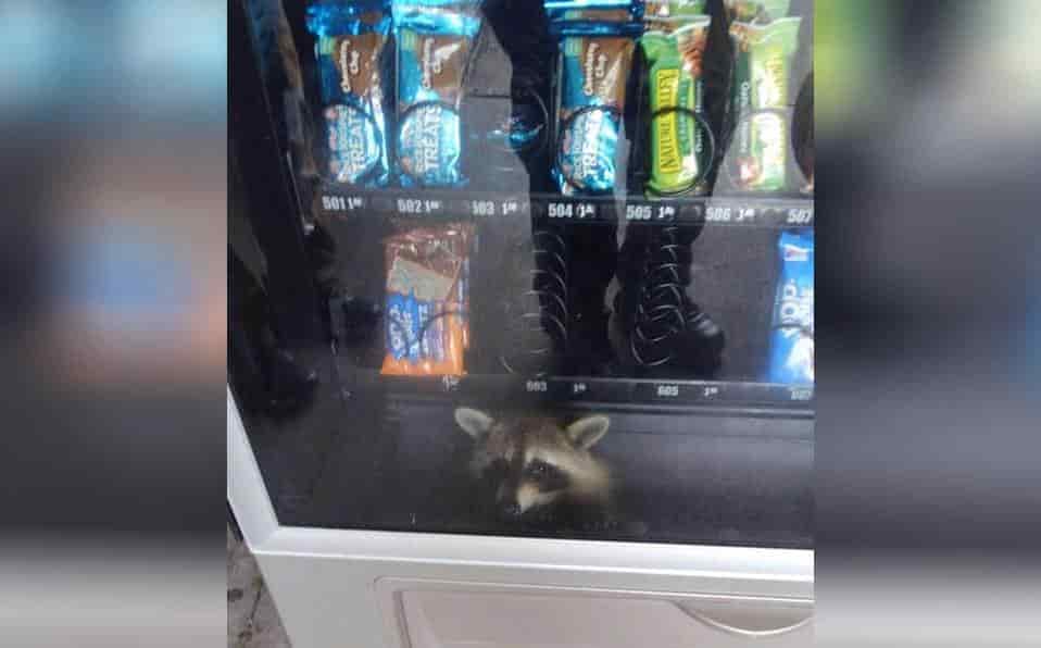 Mapache trata de ‘robar’ dulces y queda atrapado en máquina