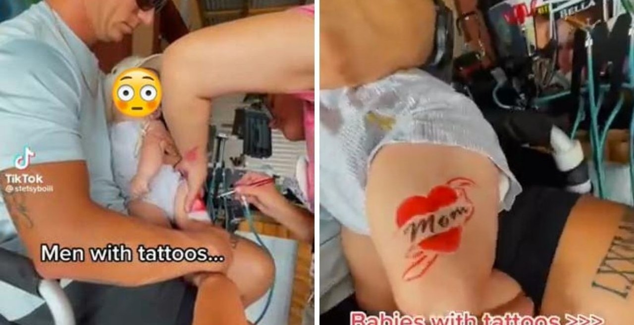 Los tatuajes se han vuelto parte de la identidad de las personas. Ya sea adultos o jóvenes se los colocan como una manera de identificarse, resaltar ante el mundo, manifestar su yo interior y/o expresarse a través de imágenes y símbolos.Sin embargo, con el paso del tiempo se han viralizado videos o testimonio en donde se ven involucrados menores de edad, a quienes les realizan tatuajes, como es el caso de un bebé que fue llevado por su padre a que le pusieran su primera marca en su cuerpo."Hombres con tatuajes, bebés con tatuajes", se lee en el video compartido en el perfil de TikTok del bebé (@stetsyboiii), que acumula millones de reproducciones, así como miles de comentarios.En el clip de apenas 10 segundos, grabado por la madre, se ve a un padre que decidió 'tatuar' a su bebé con pintura y aerógrafos cuando estaban de paseo por un zoológico de Florida.El diseño del tatuaje, muy al estilo de los ochenta, fue un corazón en color rojo con la leyenda 'mom' en color negro en el centro de él.Y aunque los padres pensaron que el video de su adorable bebé siendo tatuado causaría risa, ya que no se utilizó una máquina real y solo fue un aerógrafo, los usuarios de TikTok pensaron lo contrario, pues criticaron a la pareja al mostrarse en contra de dicha práctica y se cuestionaron si dicho tatuaje con pintura era una práctica segura para la piel del pequeño, incluso algunos lo calificaron de abuso infantil.“Casi me da algo hasta que vi el aerosol”, “Nooooo, por qué hacen eso”, “Eso le hace mal al bebé”, “La gente no piensa que si fuera un tatuaje de verdad, el bebé no estaría tan tranquilo”, "Que se tatué las nalgas el señor...que poca", son algunos de los comentarios.La cuenta del bebé stetsyboiii, nacido el pasado 22 de enero de 2022, suma con 3,500 seguidores y sus padres suelen compartir videos del pequeño donde se le ve divirtiéndose con sus padres, viajando, comiendo, jugando, entre otras cosas.Con información de info7.mx