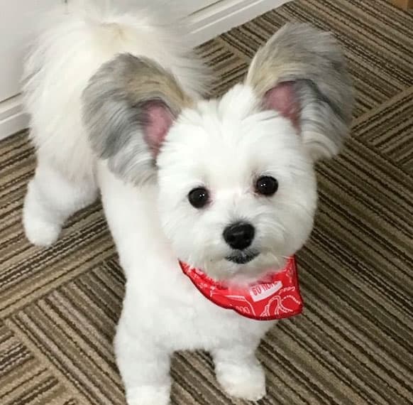 La mascota tiene cuatro años y es un mestizo, un cruce de maltés y papillón. Las imágenes han sido publicadas en Instagram y han conquistado los corazones de todos.