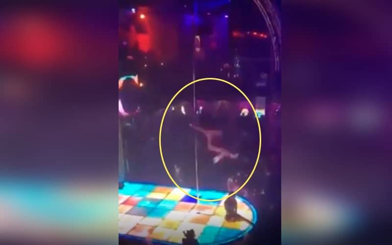 Por medio de redes sociales se hizo viral un video donde se puede ver como una bailarina de pole dance cayó de una altura de cinco metros mientras se disponía a hacer una de sus acrobacias.