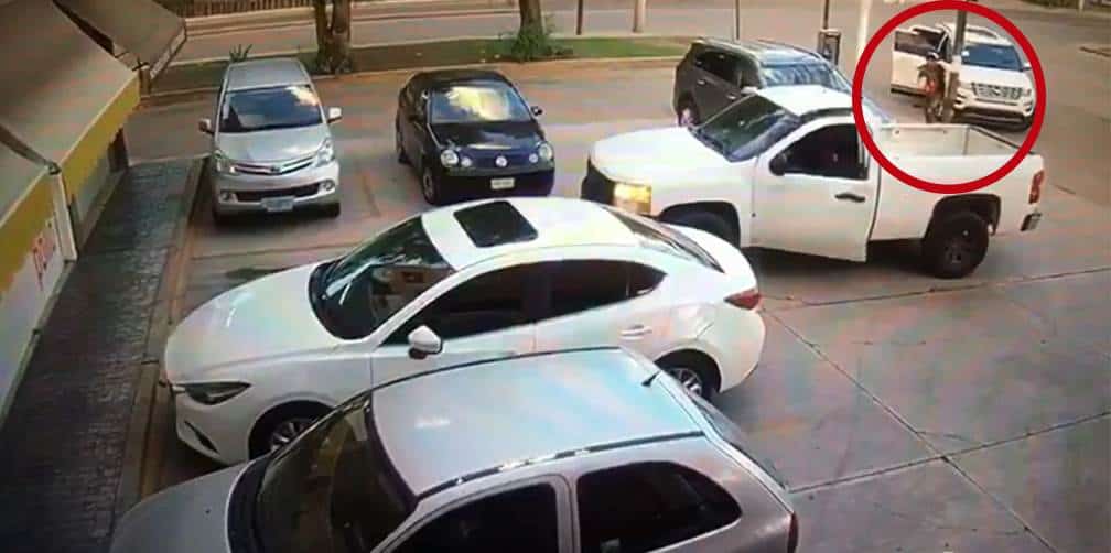 Pero otra camioneta se estacionó cerca del área y salió primero uno de los tres sicarios con armas largas que se repliegan para sorprender a los agentes.