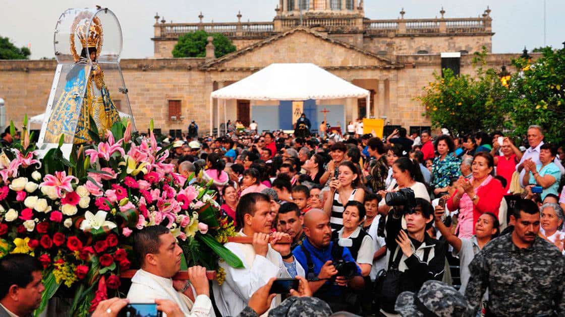 Precisó que el 12 de octubre de madrugada, “la imagen de La Generala, como también se le conoce localmente, sale de la sede arzobispal y comienza La Llevada a su Basílica en Zapopan, un recorrido de casi nueve kilómetros por las calles de la ciudad, acompañado de danzas, música, rezos y pirotecnia, en el que participan más de 30 mil danzantes.