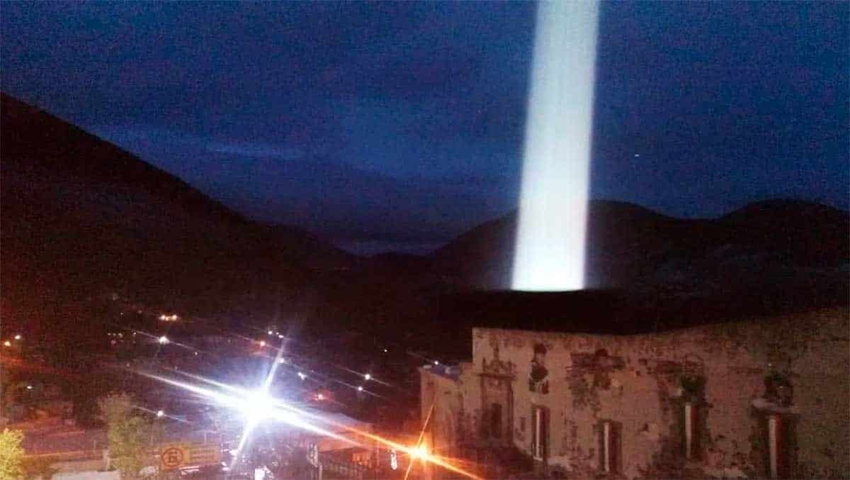 San Luis Potosí.- La impresionante imagen de un haz de luz emergiendo del suelo en el pueblo mágico, Real de Catorce en San Luis Potosí, generó diversas reacciones en los usuarios tras viralizarse a través de las redes sociales.