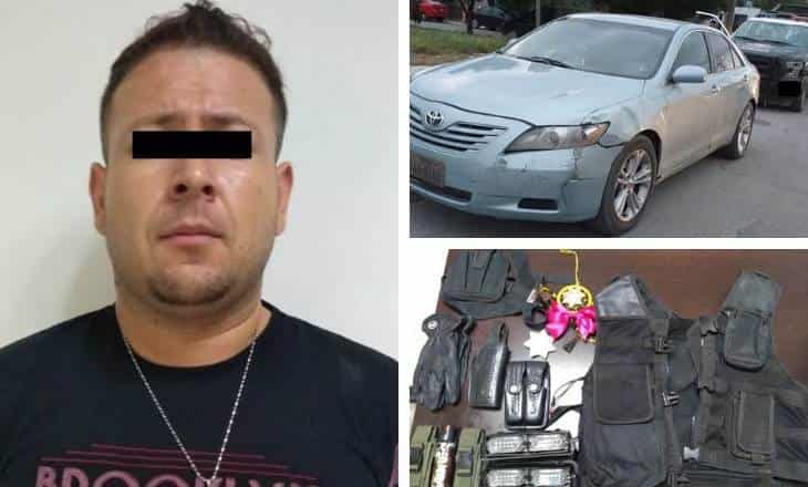 Tras asegurar los artículos que llevaba en el Camry, los policías de Apodaca detuvieron al sospechoso y lo llevaron ante el Ministerio Público como presunto responsable de usurpación de funciones al tratar de evitar su detención asegurando ser elemento policiaco.