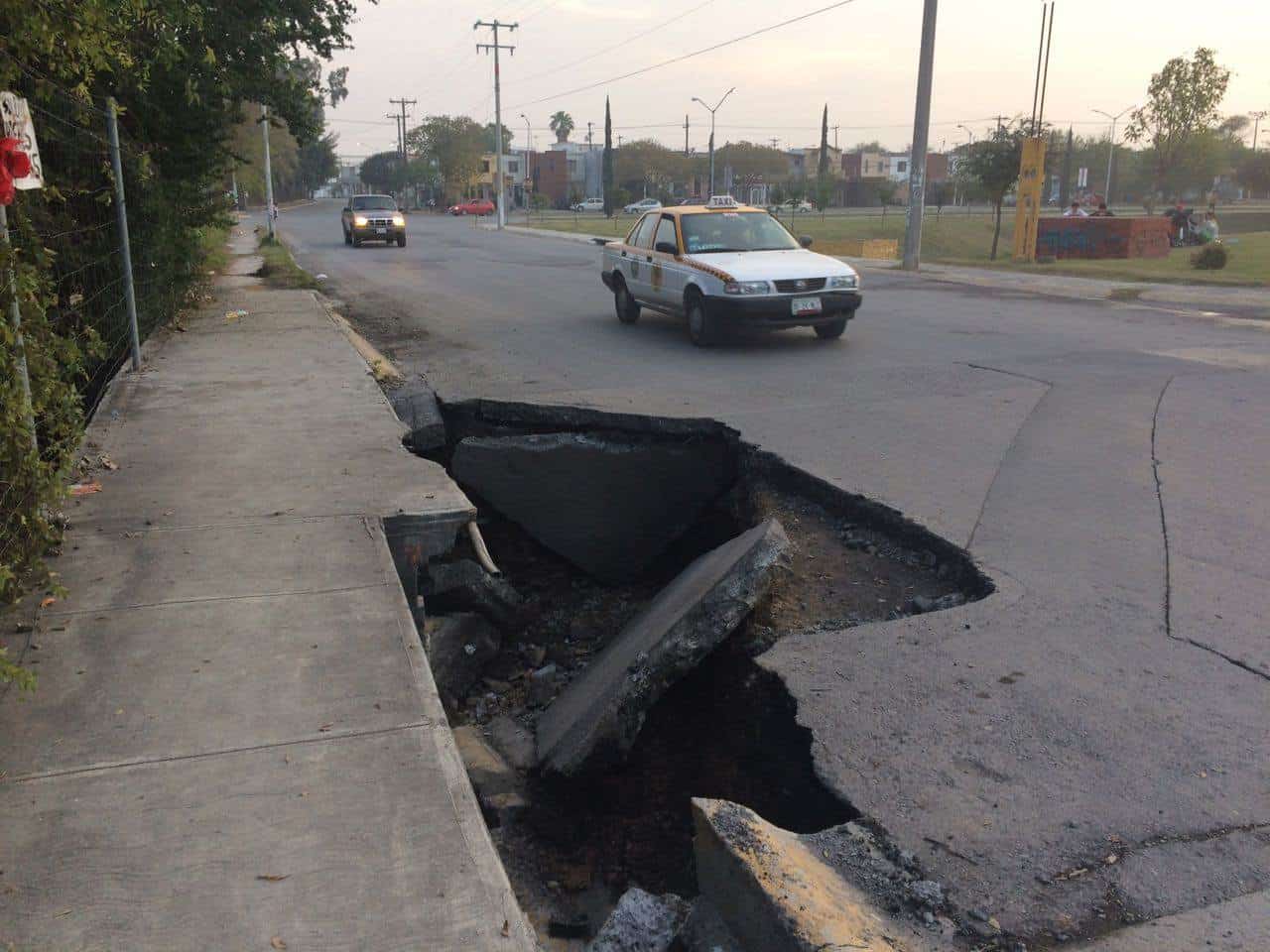 Un socavón de medidas considerables que se generó en una calle del Fraccionamiento Nuevo Las Puentes mantiene en alerta a los vecinos del sector