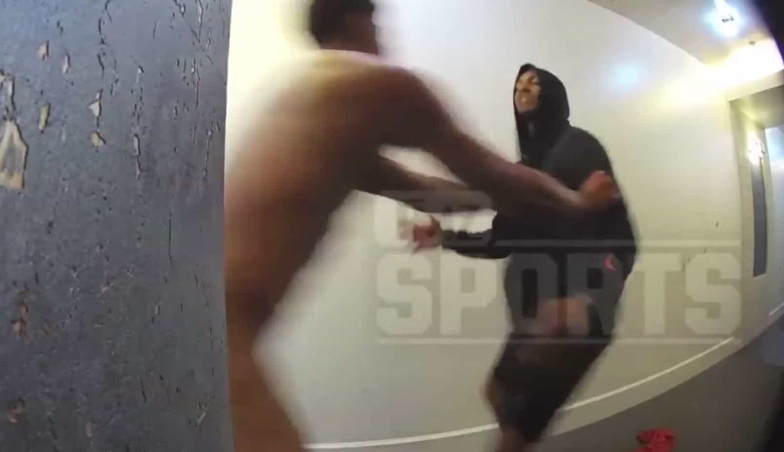 En las imágenes se ve al jugador sin ropa discutiendo con su hermano Caleb Jones, quien es jugador de los Vikingos de Minnesota, para luego romper una puerta de cristal mientras grita “lucharía por Jesús”.