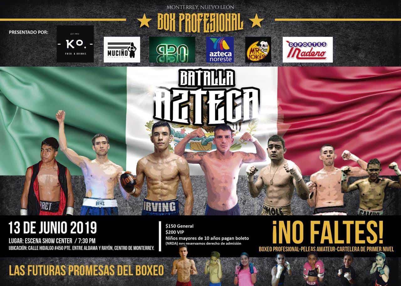 La ‘Batalla Azteca’ está lista. Nuevamente Box Azteca presenta a las futuras promesas del pugilismo regiomontano, junto a Muciño Promociones, donde Yoel ‘Mole’ Villanueva se medirá ante Carlos ‘Gambo’ Torres, por el orgullo de la ciudad.