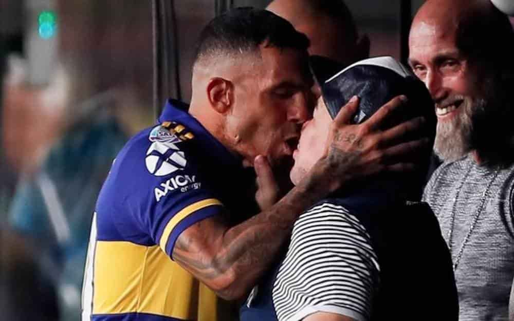 De nueva cuenta, Diego Armando Maradona ha dado de que hablar en las redes sociales, sin embargo, en esta ocasión lo hace por besarse con otro hombre, quien es ni más ni menos que Carlos Tevez, delantero del Boca Juniors.