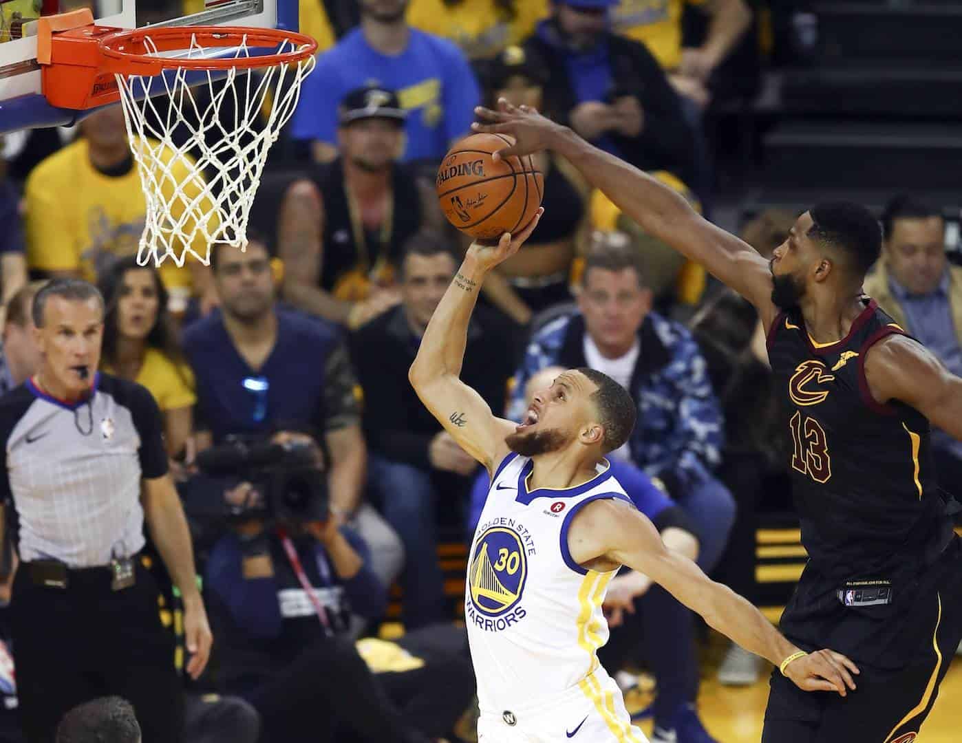 Stephen Curry y Kevin Durant combinaron 26 y 24 puntos para llevar a Warriors de Golden State a la victoria por 124-114 sobre Cavaliers de Cleveland, en tiempo extra, en el primer juego de las Finales de la NBA
