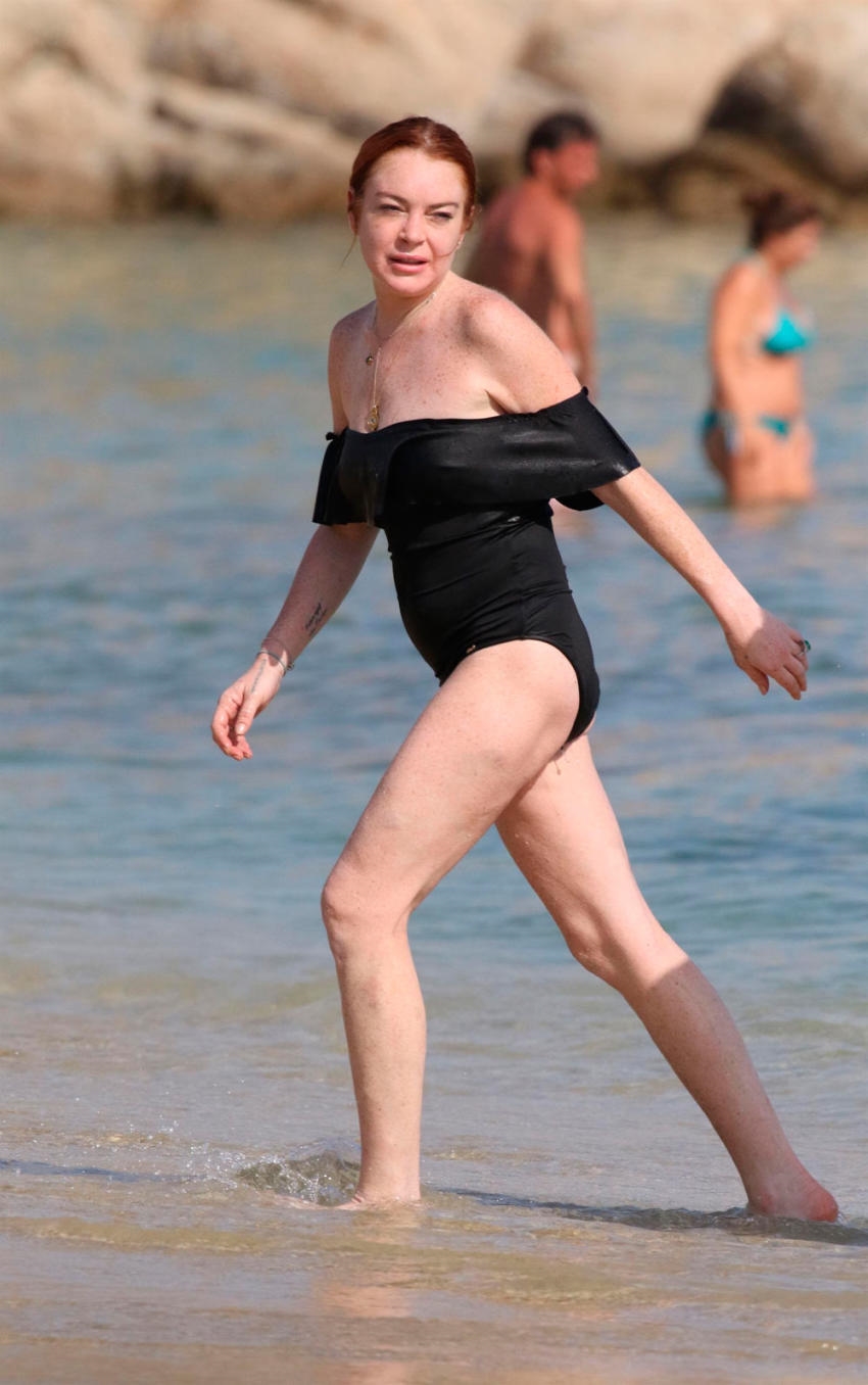 Mientras disfrutaba del mar, los paparazzi captaron a Lohan luciendo un traje de baño con olanes en color negro. Su descuidado físico no pasó desapercibido para las cámaras, y las críticas no se hicieron esperar. Aunque a ella no pareció importarle.