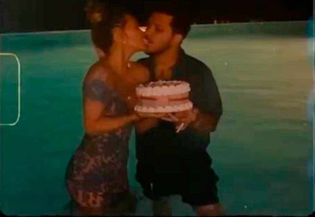 En un video que fue publicado en las 'historias' de Instagram, se puede ver a la pareja en una alberca, mientras Belinda carga un pastel y le da una mordida, posteriormente besa a Nodal y este le empuja la cara al pastel.