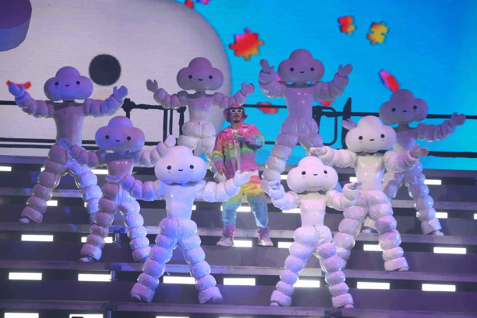 Fue a las 22:17 horas cuando el originario de Medellín, Colombia, arrancó con su show, el cual comenzó con los temas Reggaeton, Machika, Con Altura y Ahora, en estas últimas tres canciones se hizo acompañar por ocho bailarines disfrazados como nubes, misma forma de las tres pantallas LED distribuidas a lo largo del templete.