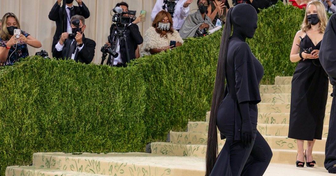 La empresaria, socialité y abogada Kim Kardashian sorprendió esta tarde a todos los asistentes a la gala del Museo Metropolitano de Nueva York al llegar completamente cubierta de pies a cabeza con un vestido negro entallado, el cual fue diseñado nada más y nada menos que por Kanye West en conjunto con la marca Blenciaga.