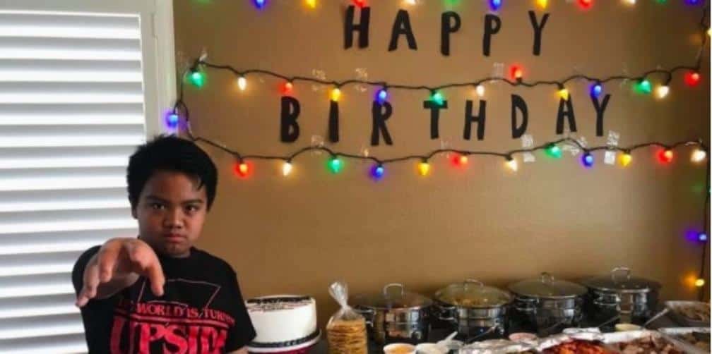 Aaron Alambat tenía planes para celebrar su cumpleaños número 12 con ocho de sus compañeros de clase en una fiesta con el tema Stranger Things, el popular programa de ciencia ficción de Netflix, por lo que decoró con luces navideñas, un dispensador de bebidas de sangre Demogorgon y un hermoso pastel.