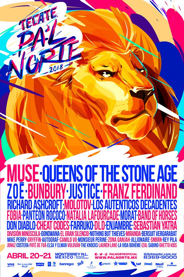 Encabezando el line up se encuentra la banda británica Muse, el cual hará su estreno en este tipo de festivales en la Ciudad de Monterrey, y la banda Queens of the Stone Age.