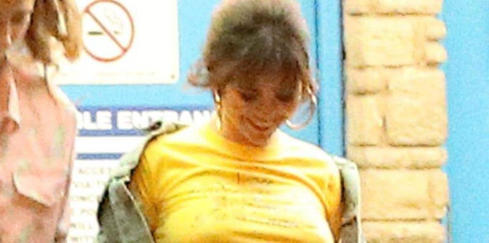 La cantante fue vista saliendo de una pista de hielo luciendo una vestimenta casual conformada por blusa amarilla y shorts de mezclilla, sin embargo, lo que captó la atención fue el hecho de que no llevaba puesto sostén.