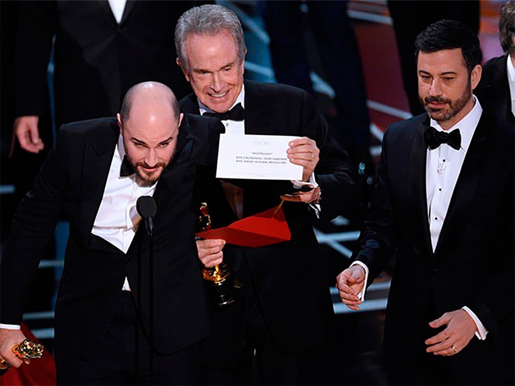 En una situación inédita en la entrega de los Óscares, Luz de Luna se llevó la máxima presea de la edición 89 de los premios de la Academia, luego de que el actor Warren Beatty cometiera un error al leer la tarjeta de la Mejor Película y se le entregara la estatuilla a La La Land: Una Historia de Amor. Beatty confesó su pifia al señalar que le entregaron un sobre equivocado con el nombre de Emma Stone, actriz de la cinta y ganadora por Mejor Actriz.
