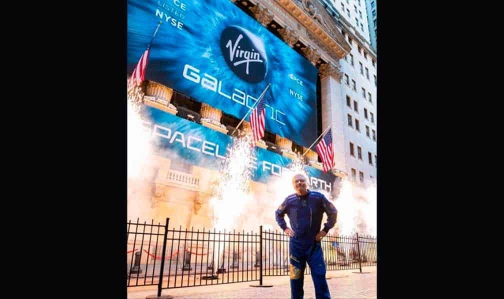 Virgin Galactic, que encabeza el empresario británico Richard Branson, debutó en la Bolsa de Valores de Nueva York, con lo cual se convirtió en la primera compañía de turismo espacial en cotizar.