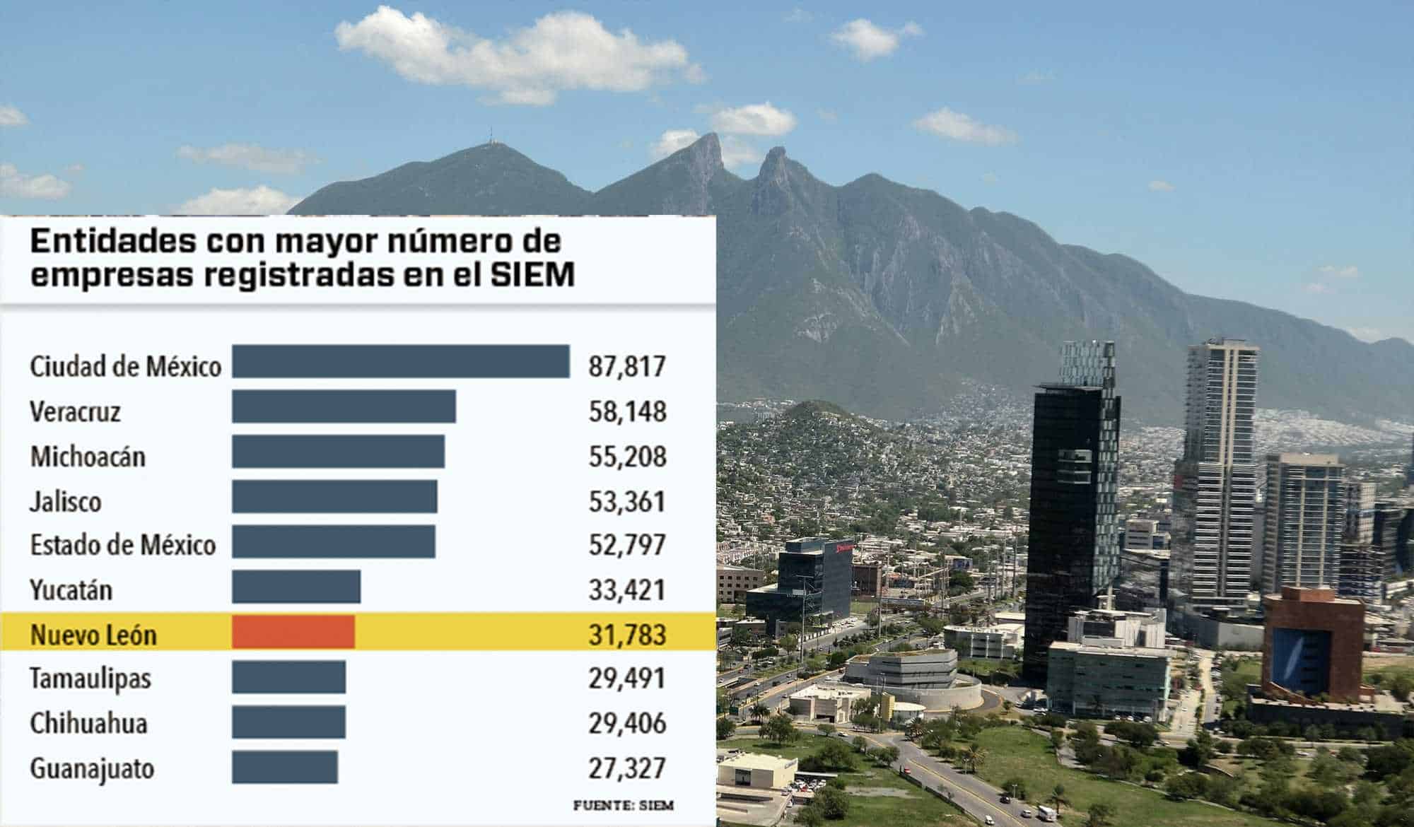 Mientras a nivel nacional se reporta un cierre de empresas, en el estado éstas van al alza. Según el Sistema de Información Empresarial Mexicano (SIEM), un registro de la Secretaría de Economía, las empresas de Nuevo León aumentaron 96% entre 2013 y 2017.