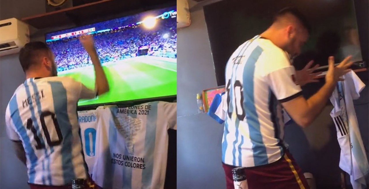 Aficionado rompe televisión al celebrar gol de Messi