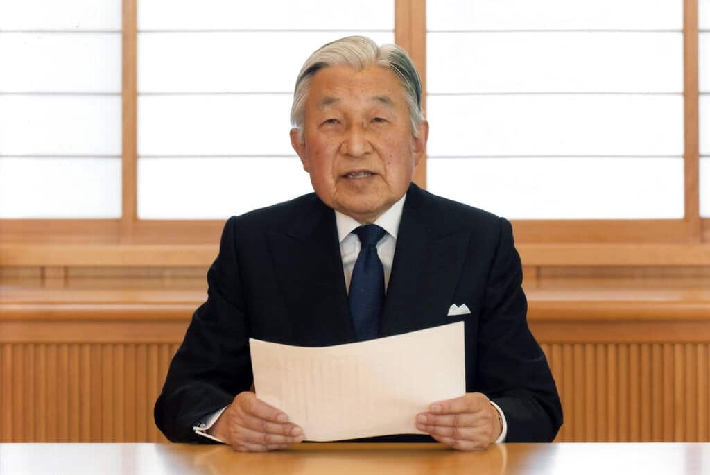 “Los efectos físicos y mentales del envejecimiento me impedirían seguir desempeñando mis funciones de emperador simbólico con la máxima dedicación, como hasta ahora”, indicó Akihito al anunciar su voluntad de abdicar en favor de su hijo Naruhito mediante un mensaje de video transmitido en agosto de 2016, en el vigésimo octavo año de su mandato.