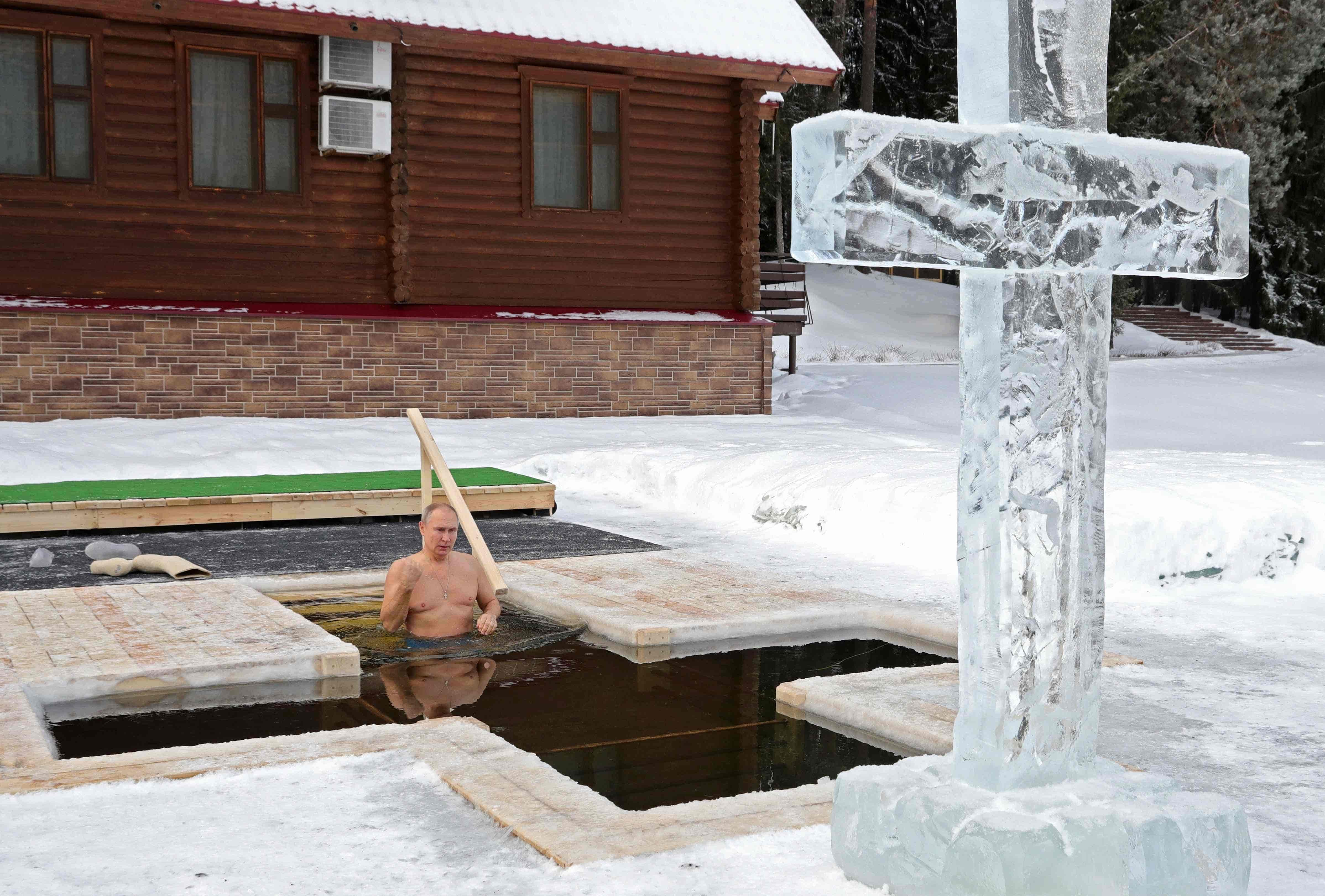 Putin, un creyente confeso, se da todos los años un baño en un estanque después de asistir a la tradicional misa de Epifanía, una de las festividades más importantes de la Iglesia Ortodoxa.