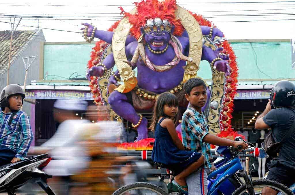 La noche anterior al Nyepi se celebra con ruidosas procesiones ogoh-ogoh de aterradoras figuras gigantescas que simbolizan los espíritus malignos