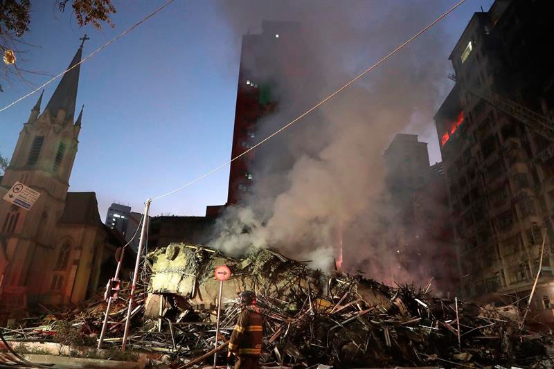 Al menos una persona falleció hoy después de que un edificio de 24 plantas se derrumbase hoy en el centro de Sao Paulo durante un incendio de grandes proporciones que también afectó a un predio vecino, según los bomberos