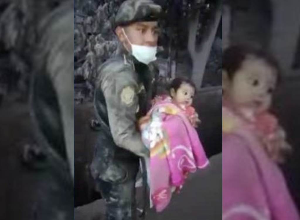 Captan rescate de bebé tras erupción volcánica en Guatemala