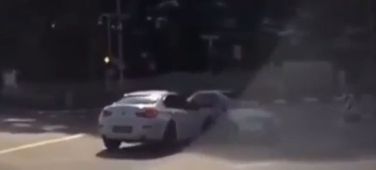 Una cámara de video instalada en un automóvil registró un inusual accidente de tráfico en Singapur. En las imágenes se observa cuando un auto blanco da vuelta a la derecha e inesperadamente otro vehículo sale de ‘la nada’ a gran velocidad y lo choca.