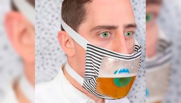 Este increíble invento permite a los usuarios de mascaras faciales protegerse contra los virus y bacterias y al mismo tiempo disfrutar de una fría cerveza