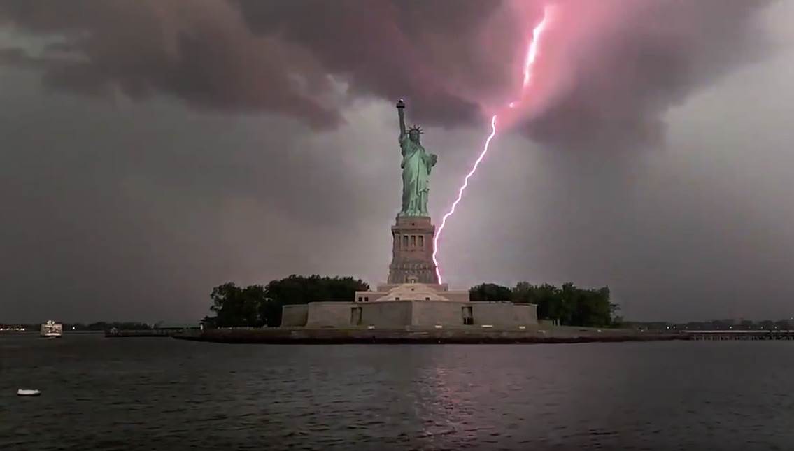 ¡De película! Caen rayos encima de la estatua de la libertad en Nueva York