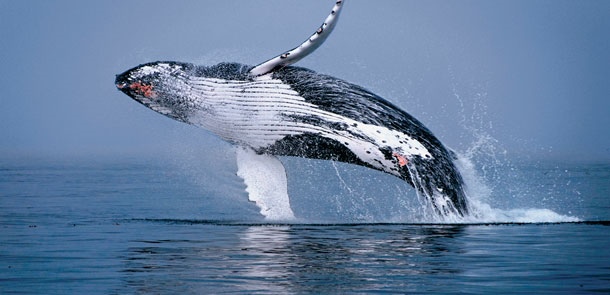 Las jorobadas son de las especies más reconocidas debido a su triangular aleta dorsal, ubicada en una especie de joroba, y sus acrobacias cuando saltan fuera del agua.