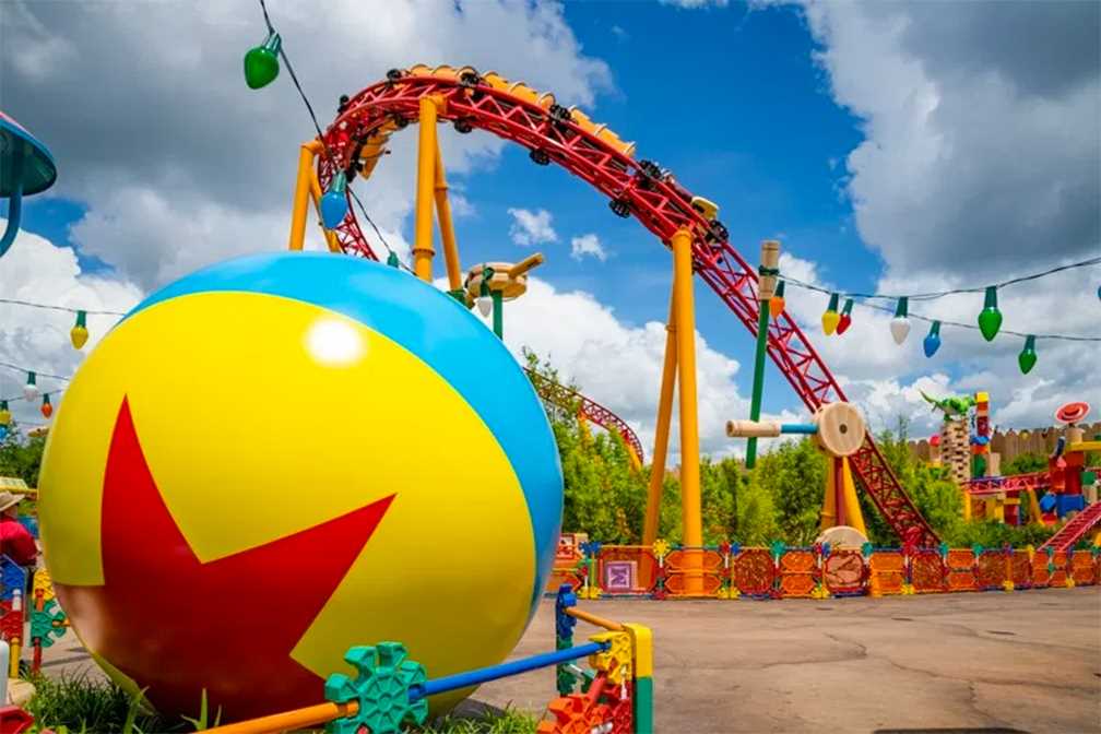 Con una fachada que evoca las ferias de carnavales pueblerinos, Toy Story Land es una atracción que apuesta por ese niño presente en menores y adultos a los que apela con sus juguetes, una montaña rusa y juegos interactivos.