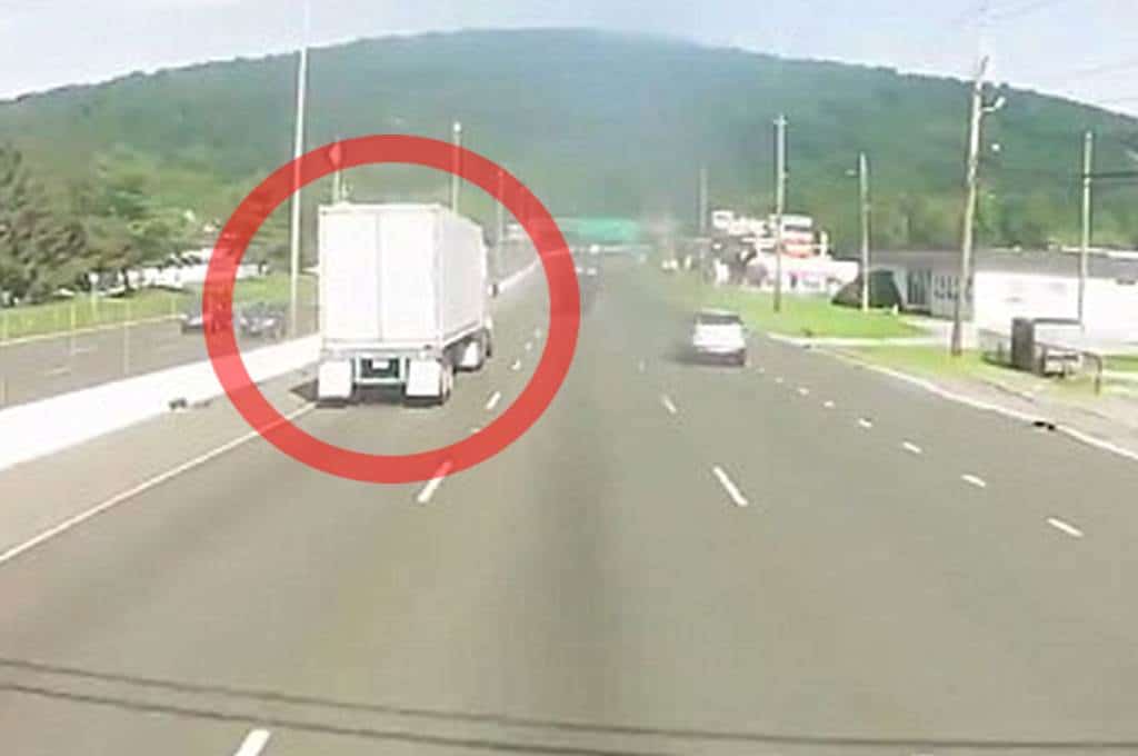 El inquietante momento en que un tráiler vuelca a toda velocidad