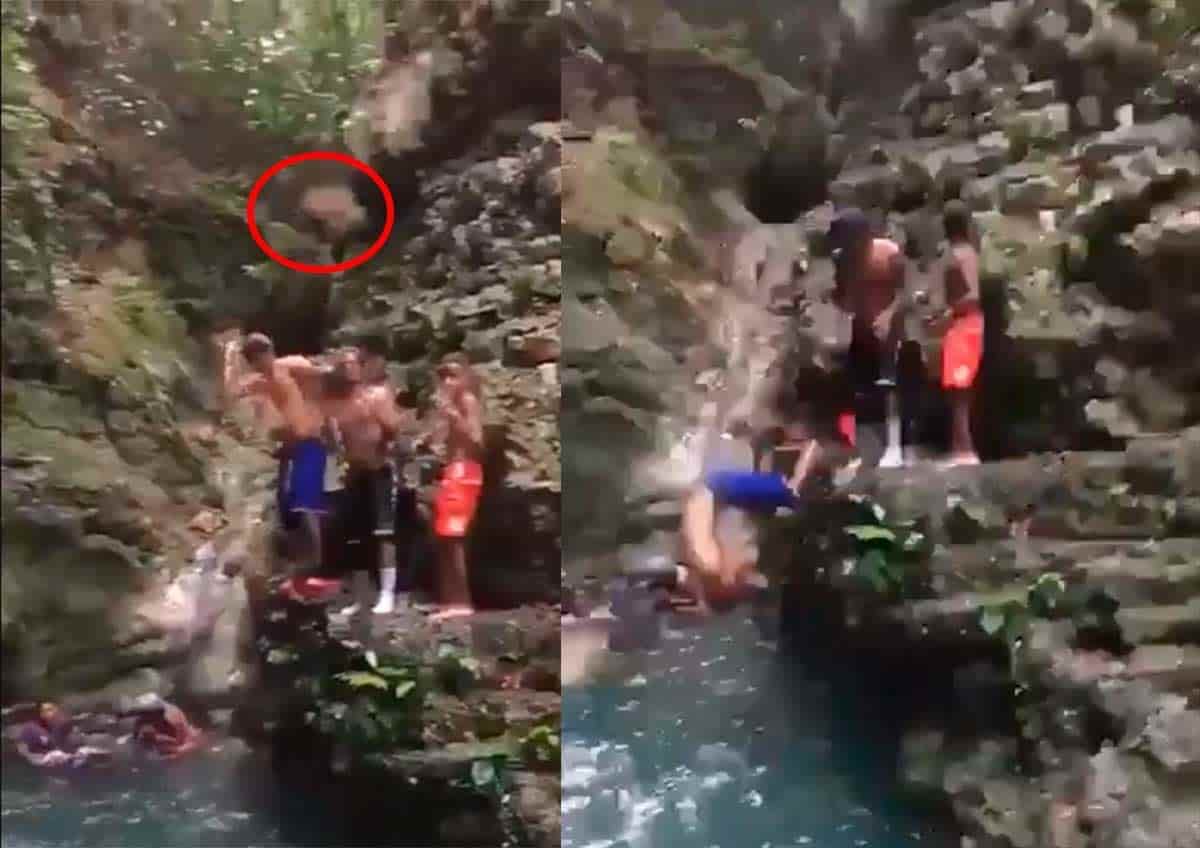 Los acompañantes del joven se apresuraron a ayudarlo al verlo caer al fondo de un manantial de aguas cristalinas
