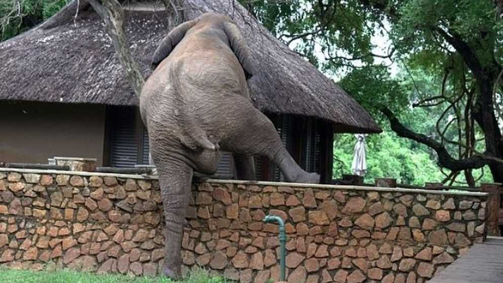 Con la finalidad de hacerse con un dulce botín, el elefante se cruzó una barda para poder saciar su hambre con unos mangos.