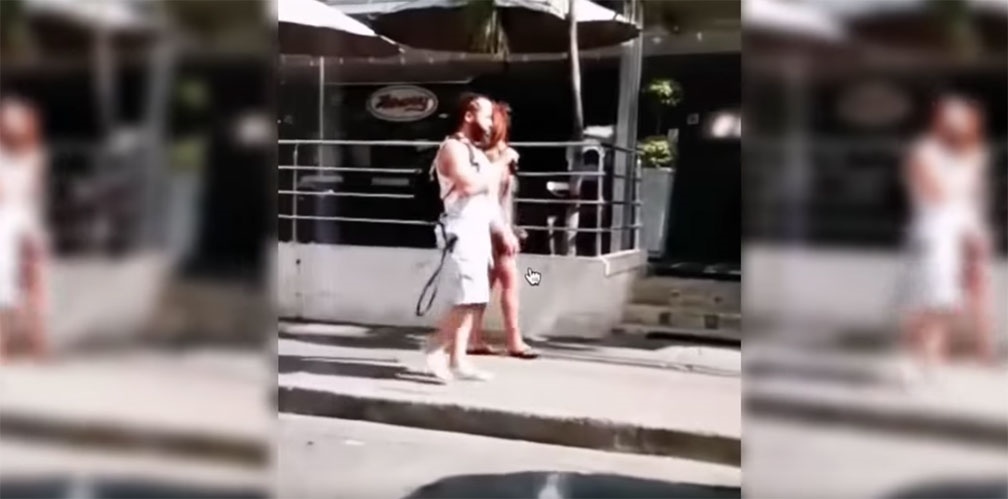 Hombre levanta polémica tras llevar a su novia con correa en el cuello