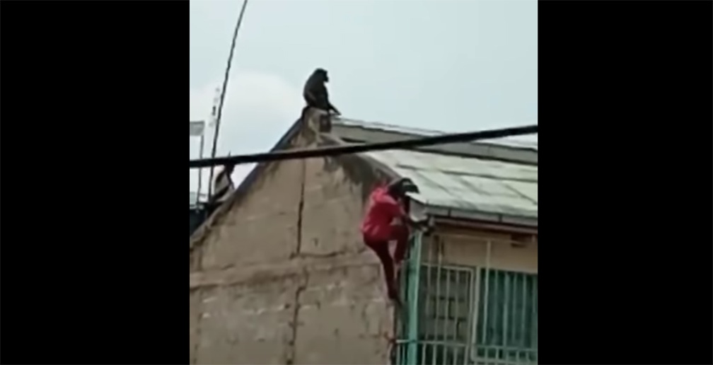 Dicho suceso comenzó cuando el joven, identificado como Dickson Maina, trepó por el balcón de un edificio para llegar hasta la azotea, donde se encontraba un babuino adulto, el cual estaba fugitivo.