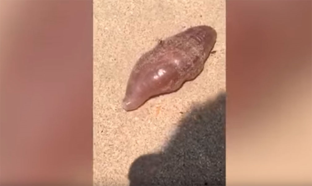 Un turista británico grabó a una extraña criatura que el mar dejo en una de las playas de Tailandia, el animal medía 13 centímetros de largo y entre cinco y siete de ancho.