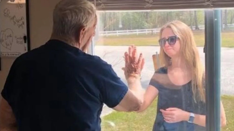 Joven visita a su abuelo asilado por coronavirus y se hace viral