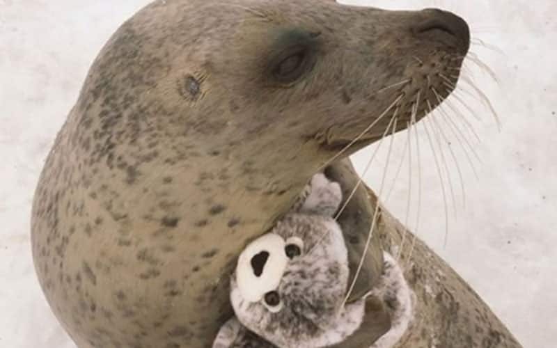 La tierna foca que abraza a su ‘doble’ de peluche se hace viral en redes