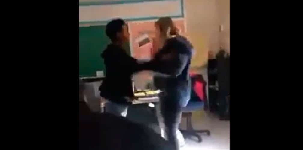Maestra y alumno protagonizan brutal pelea en pleno salón de clases