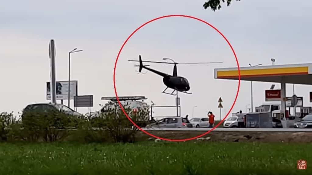 Las imágenes de la extraña escena de un helicóptero cargando en una gasolinera en Polonia se hicieron virales