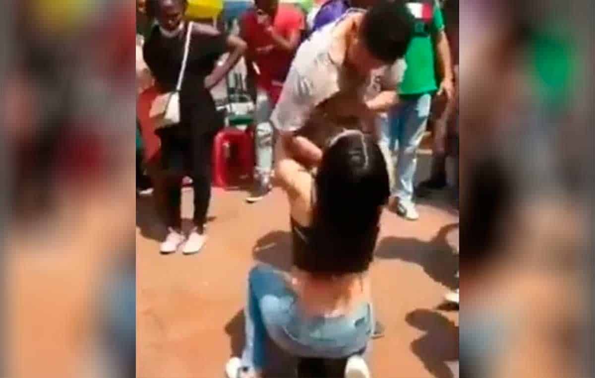 Esto enfureció más a la mujer que jaloneó al joven de la playera. Por segunda ocasión la novia intentó acercarse a ellos y cuando la exnovia iba a lanzarse sobre ella, una mujer ajena a la discusión alejó a la joven.