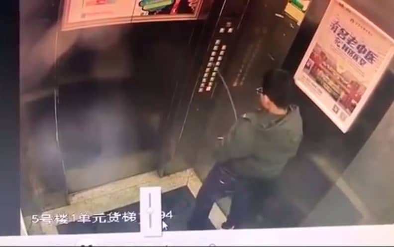 Una cámara de seguridad captó el momento en que un jovencito orina los botones de un elevador en Chongqing, China, y quedó atrapado después de causar un corto circuito.