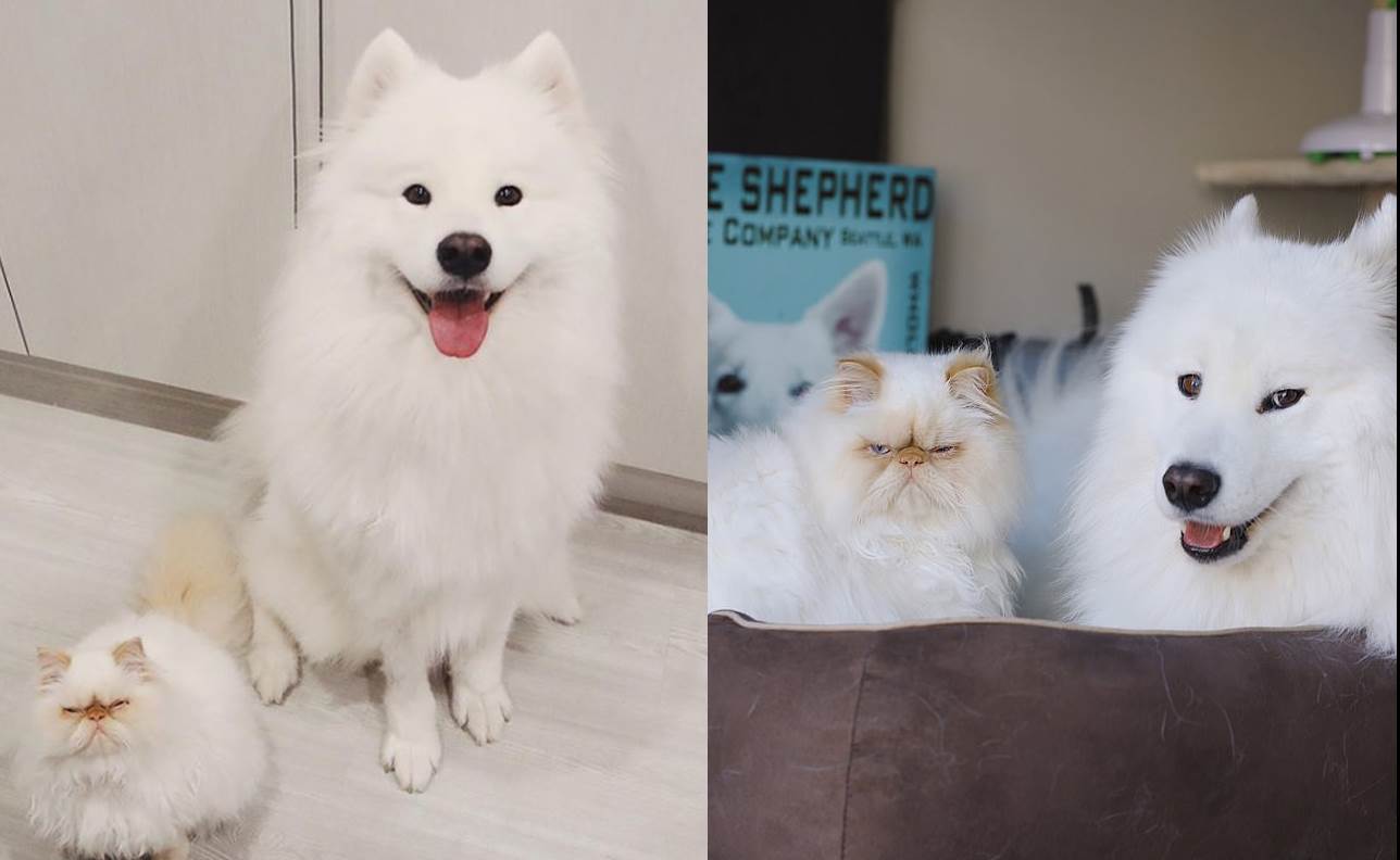 Nueva Zelanda.- Un perro samoyedo sonriente y un gato gruñón se han ganado una legión de seguidores en Instagram debido a su improbable pero adorable amistad.