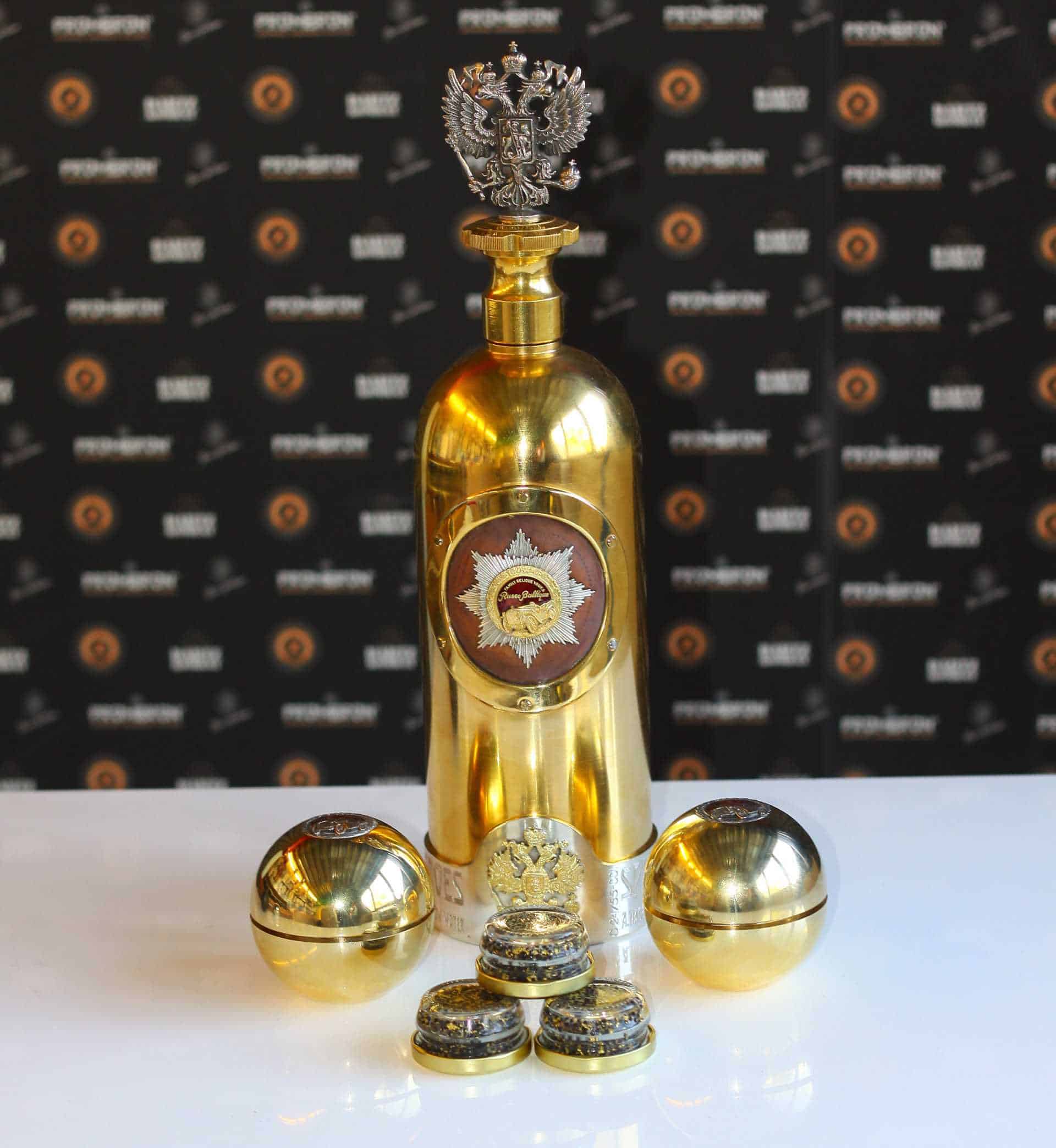 La botella, de la marca Russo Baltique, está hecha con tres kilos de oro y de plata y lleva en la parte superior una cinta de cuero con el dibujo del primer coche Monte Carlo de 1912, declaró al canal TV2 Brian Ingberg, propietario del bar.